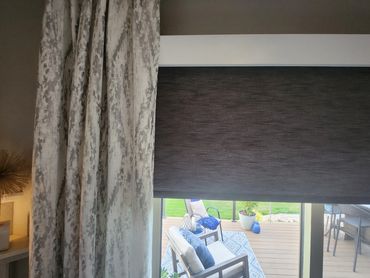 Smart (automatic) custom shades provided by our window treatment partner, Budget Blinds.
