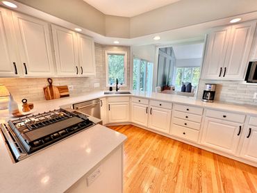 This custom-built speculative, Wisconsin property was purchased in 2007 and after several years of being surrounded by 'honey-oak' flooring, cabinetry, and trim, along with too much 'dead wall' space, it was time to imagine something new. So, in 2019 The Nira Project ensued. Desiring to maintain a timeless design style, the owners opted for 'white-oak' flooring, ceiling height espresso kitchen cabinetry, dark trim, and classic quartz countertops.